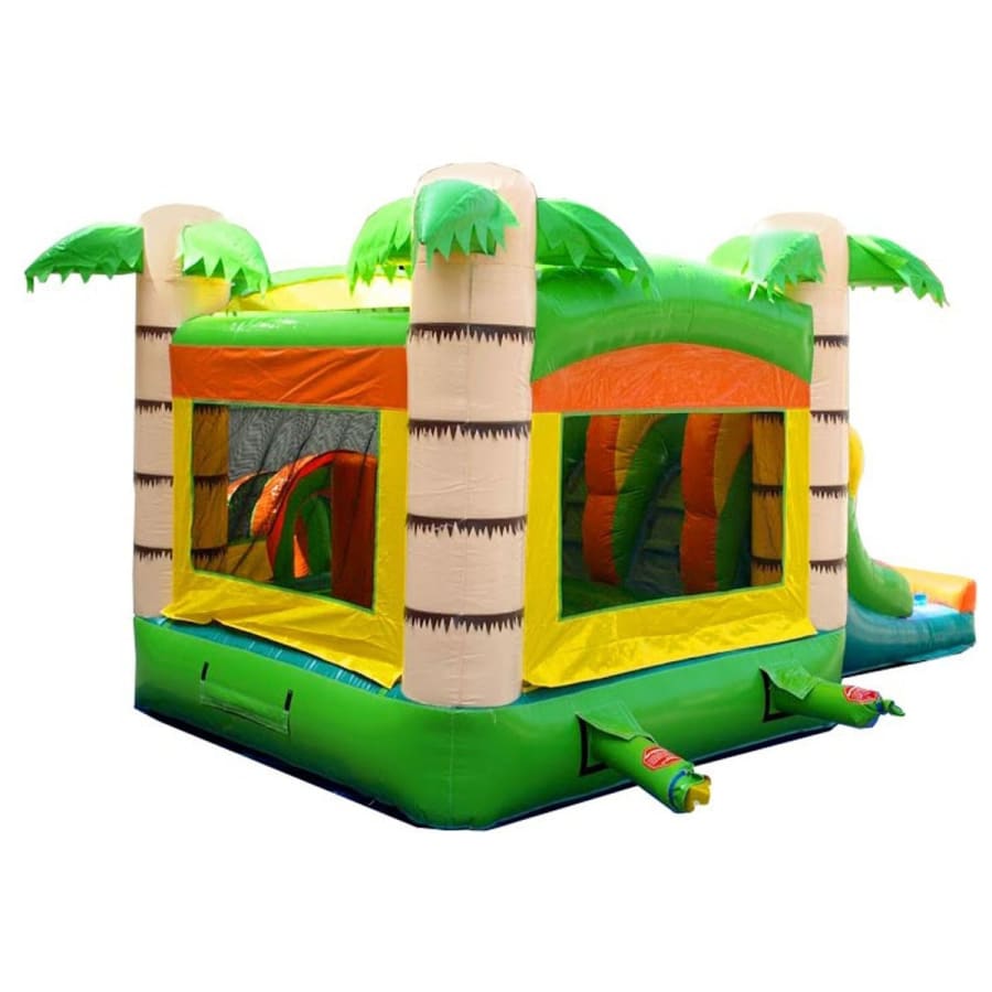 With bright, vibrant, gender-neutral colors in a festive tropical theme, this unit can be used for a boys or girls event, allowing for the potential to double your rental profits. It offers everything that an inflatable bounce house slide combo should and then more when you add in two slides. This kid's sized inflatable was designed with your little ones in mind, with an emphasis on fun times and as always, safety. Spanning just under 22 feet in total length, it boasts everything you could want for a gathering of small children and is sure to be the centerpiece of any birthday party, day-care center or pre-school activities.