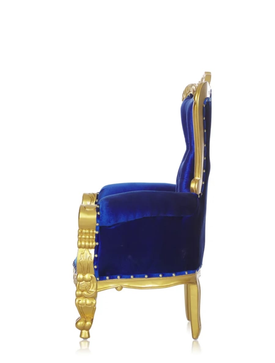 Royal Blue Velvet & Gold Kids Throne Chair