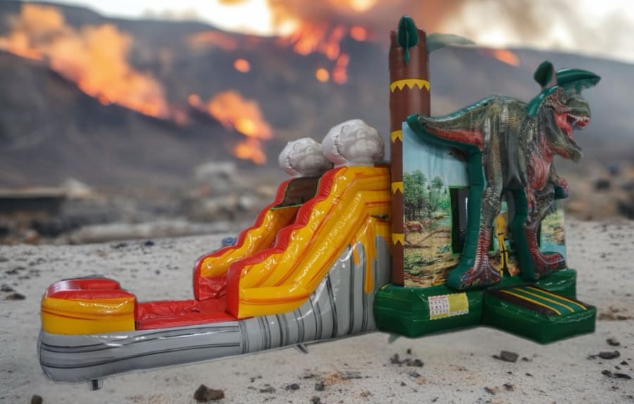 Give your guests the adventure of a lifetime with this dynamic and fun-filled inflatable. Book the Tropical Dinosaur Wet/ Dry Combo now and turn your celebration into a roaring success!