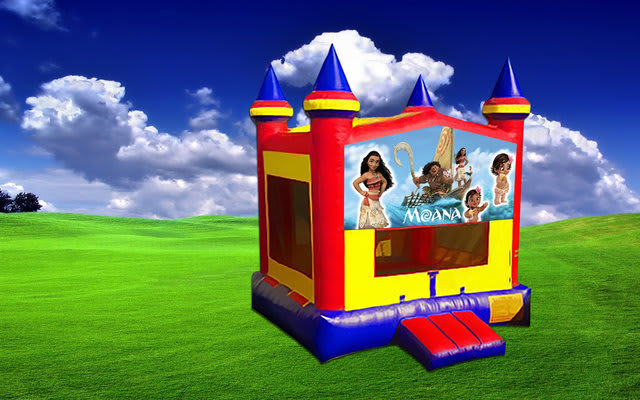 Our Moana Bounce Castle will keep the party going all day. This medium bounce house can hold up to 10 kids easy and still have room to slam dunk the ball. This unit is enclosed and has a roof to keep the sun out. We carry over 50 different themes for this bounce house.