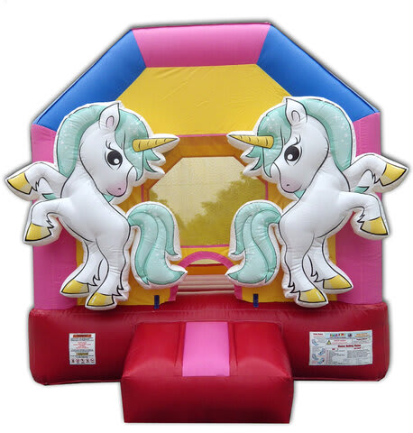 Make sure to book this inflatable early! This magical unicorn themed bounce house comes fully equipped with enough space to hold 6-10 kids in the jumping area. The two 3D unicorns will really bring your party to life. The Unicorn castle is clean, safe, and designed for ages 2 to 11. Reserve our Unicorn Castle and give your little princess a day to remember...