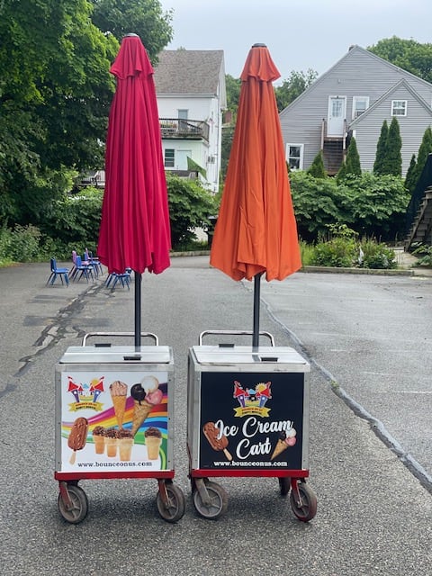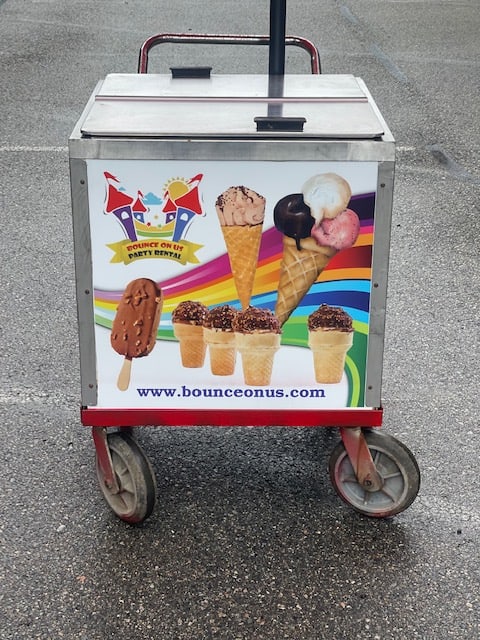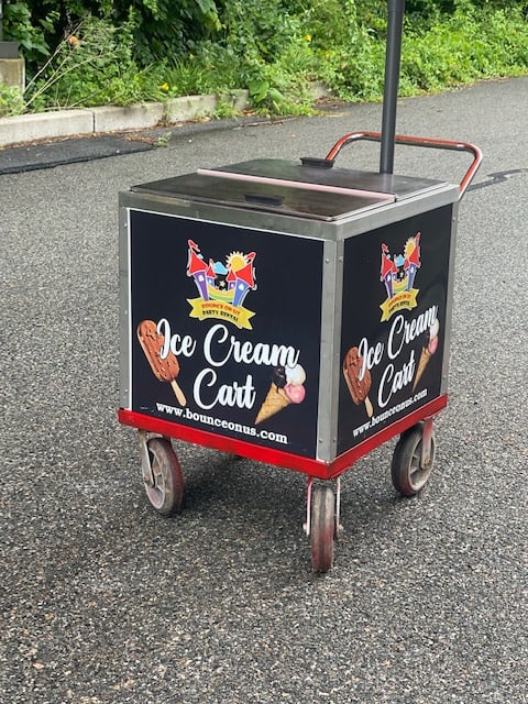 Have a taste of something sweet at your next event! Built sturdy and tough, this Ice Cream Cart rental is a small volume Ice Cream Pushcart, perfect for catering and party venues! It’s a small-sized Ice Cream vending Cart ideal for those vendors who seek a lightweight cart that is very easy to push and get around. To fully complete the experience we will provide (3 tubes of ice cream or Italian ice with supplies) with ice cream cart rental. Bring this summer treat to your next indoor or outdoor event! The Ice Cream Cart rental is great at events like a company picnic, school fairs, and festivals!