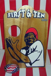 First & Ten Case Game is a great game to use for school carnivals, festivals, and corporate events. Players try to get the mini football into the receivers hands. Score a touchdown and win a prize.