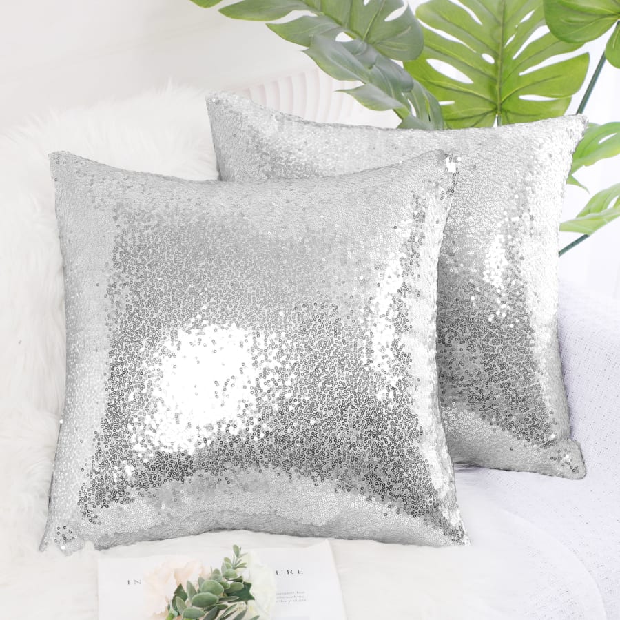 2pc Silver Sequin Throw Pillows