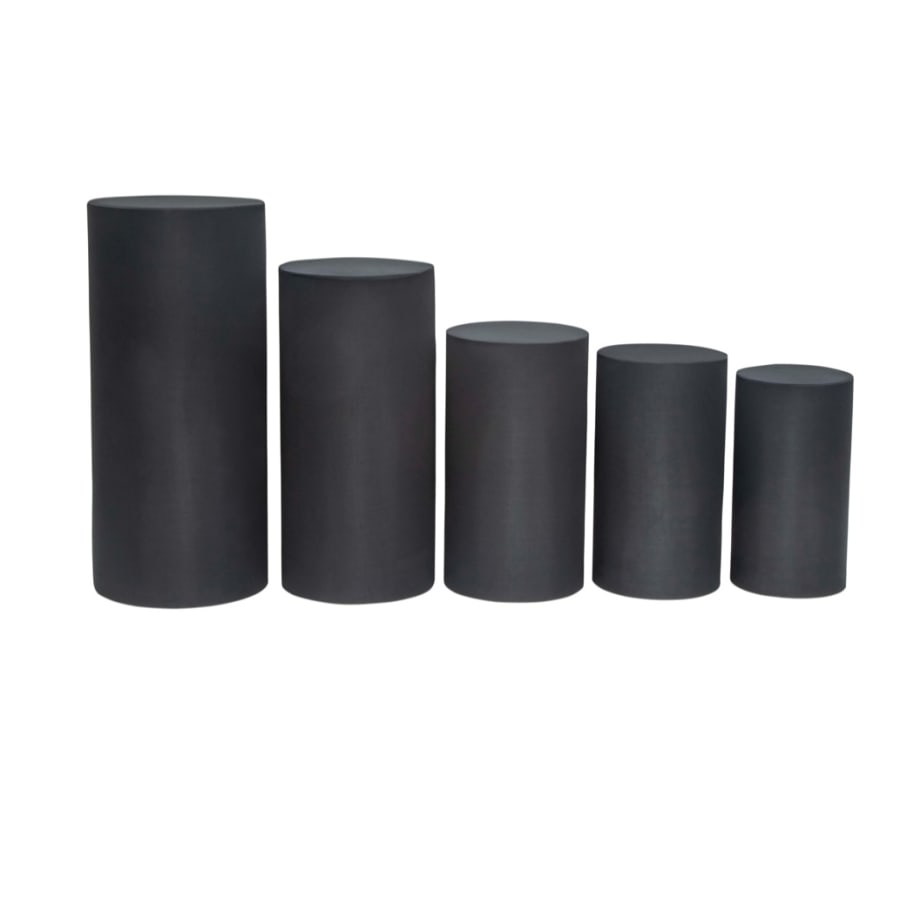 Create an enhanced dessert table design and presentation for your backdrops at special events with our Cylinder Pedestal Stands 5 pcs/set -Black! These elegant cylinder pedestals bring a heightened visual appeal to blend more seamlessly with your event setups. The purpose of using a pillar is to accentuate the feel and look of cakes, desserts, and pastries on a metal pedestal dessert table as it highlights and compliments the colors and theme of your party.