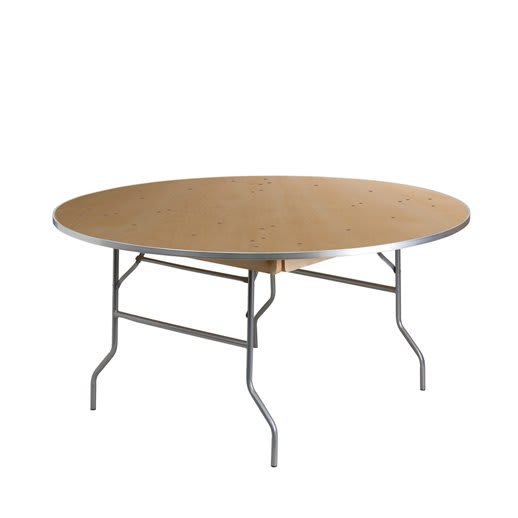 Our 5' Round Folding Table in white caters to any occasion. Dress it up for the holidays or take it outside for a barbecue. Set more than one side by side for large scale events and add runners and place settings to enhance the look. This versatile piece saves space and time with legs that fold in and a center collapse feature that makes transport and storage virtually effortless. Its rectangular length provides additional seating at both ends of this heavy duty table. It has a strong steel frame and legs and a low maintenance, sturdy easy to clean top. 100 lb Weight Capacity.